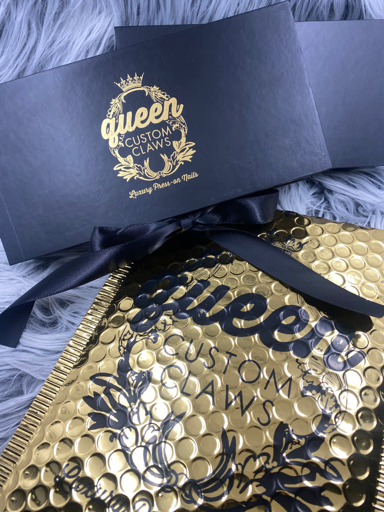 All handmade purchased sets are shipped in one package. Your package will include a beautiful magnetic close gift box that doubles as a storage box. File and store your sets and tools as you grow your nail wardrobe.