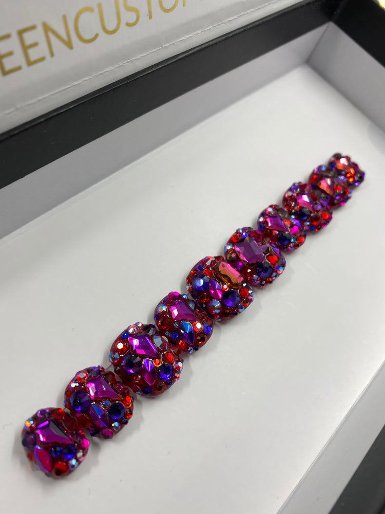 Beautiful Full bling nails in custom color mix of your choice.  This mail set combines 1 specialty cut per nail, and a mixed style of crystals and cabochon pearls and gems.  Email, call or DM me to customize your next Statement nail set!