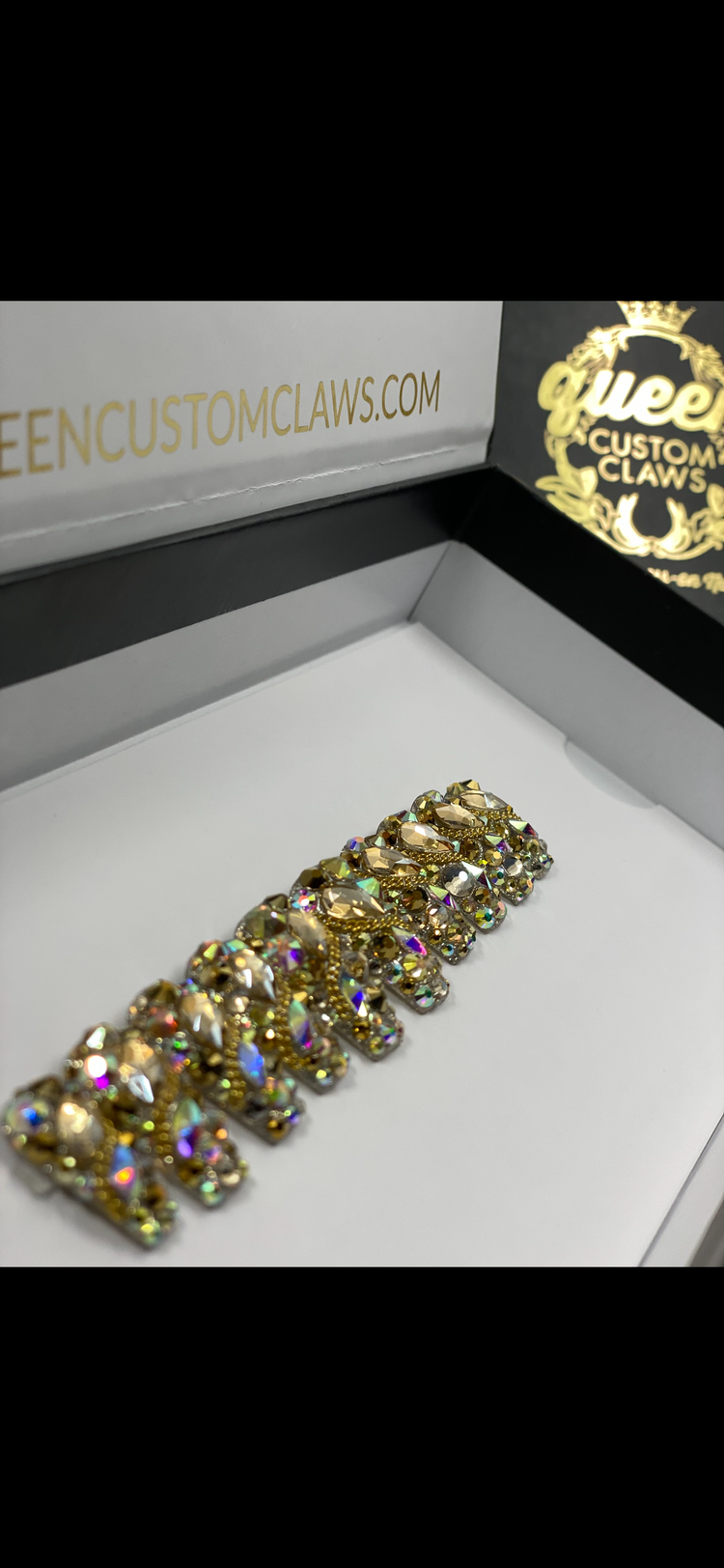 *please note- these nails are designed for a queen’s lifestyle....in other words- no manual labor. Over flexing the "C" curve or knocking nails can cause gems to pop. STYLES 1 & 2 may require smaller coordinating gems on the pinky nails due to size.