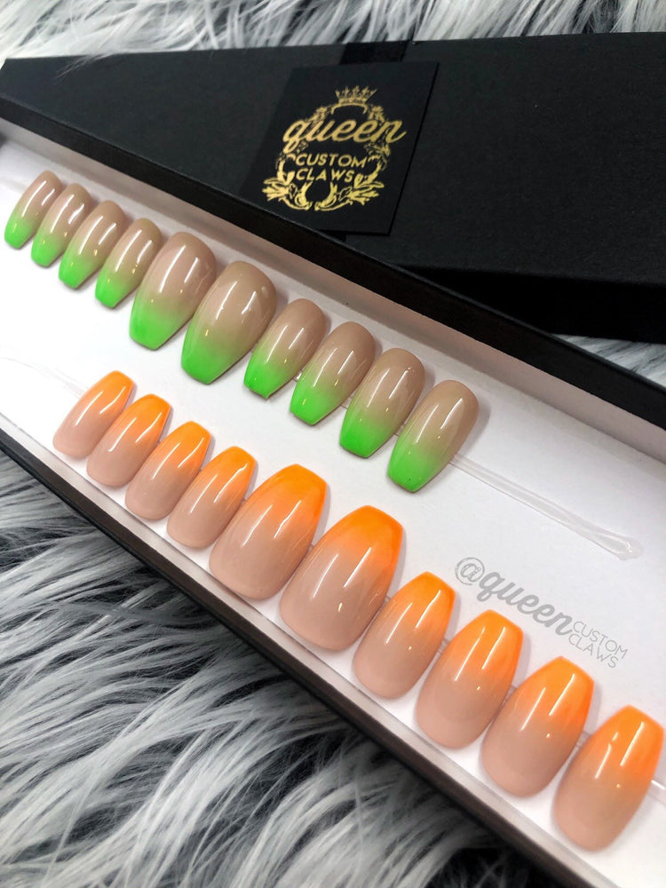Neon to Nude Boomer Ombre- press-on nails