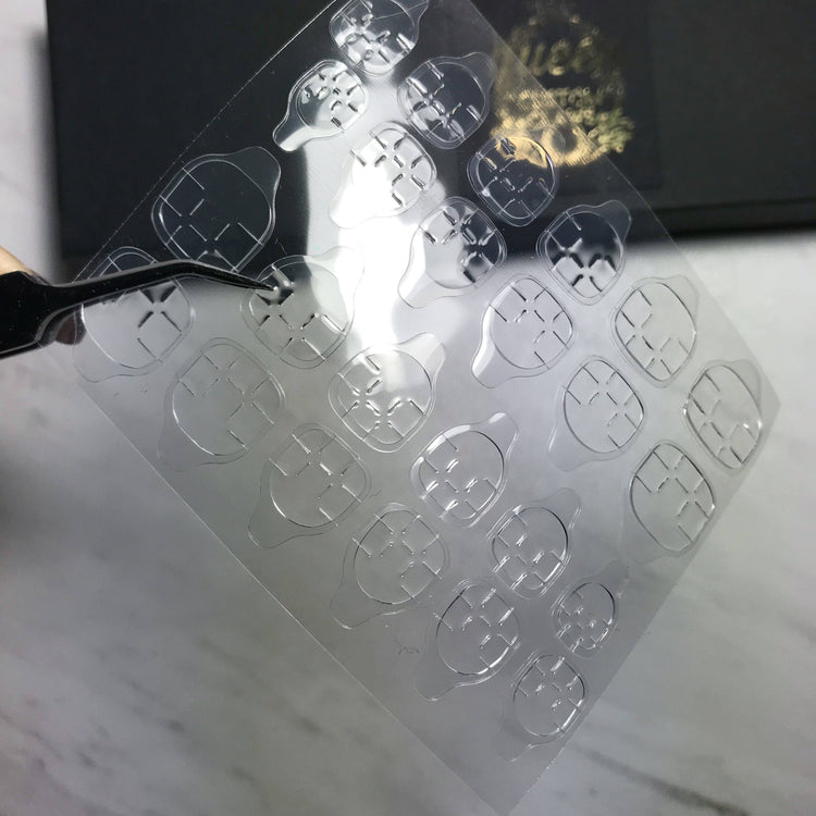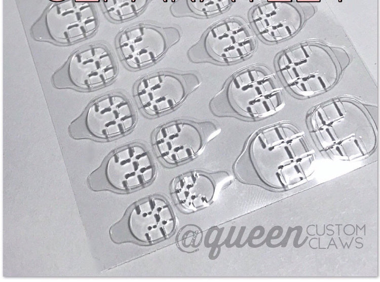 2 sheets of 24 sticky Adhesive nail tabs. Nail tab shape may vary, though all are clear adhesive. Great for temporary wear...wont damage natural nails or your custom claws. You can use your claws over and over.