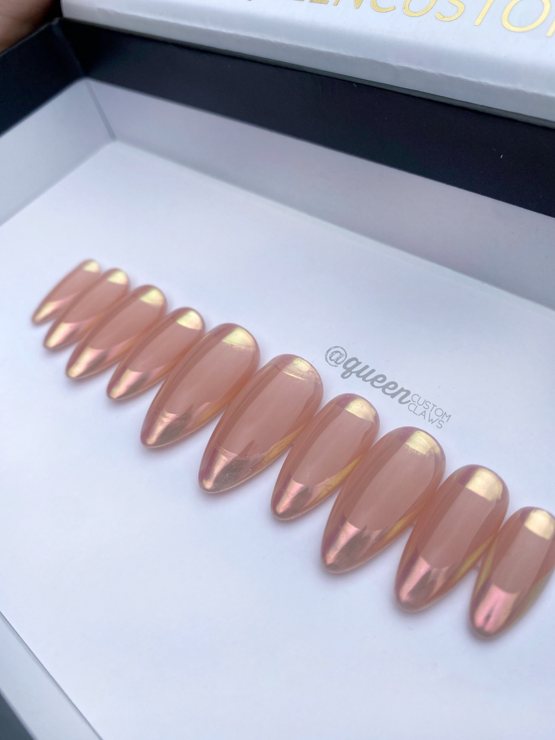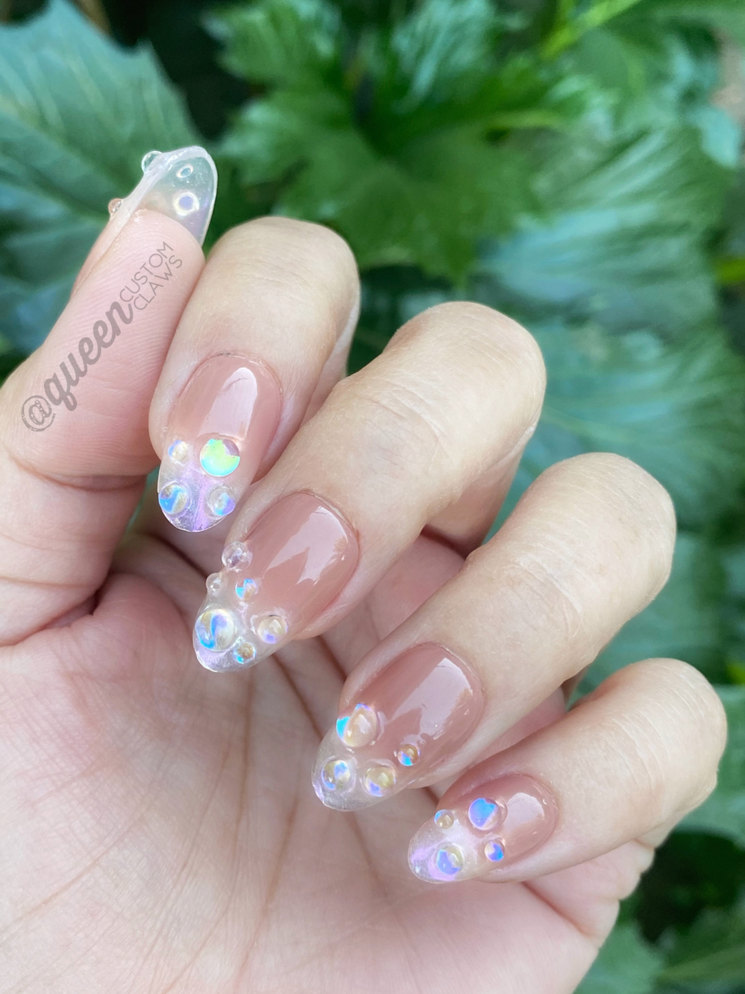 We use gel to create thicker, stronger, more durable and reusable nails.  Your nails are made from gel, so you won't have to worry about hairspray and sunscreen dulling the finish or your manicure. Because they are durable, you can reuse your nails over and over.