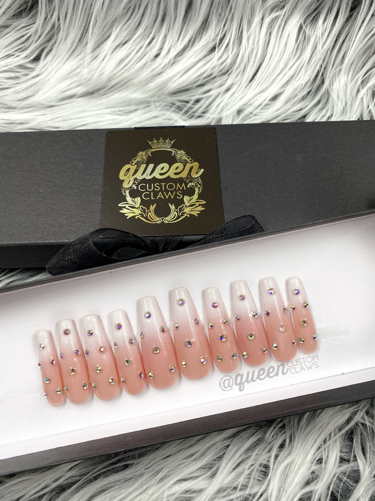Studded Baby Boomer pink & white Ombre- press-on nails