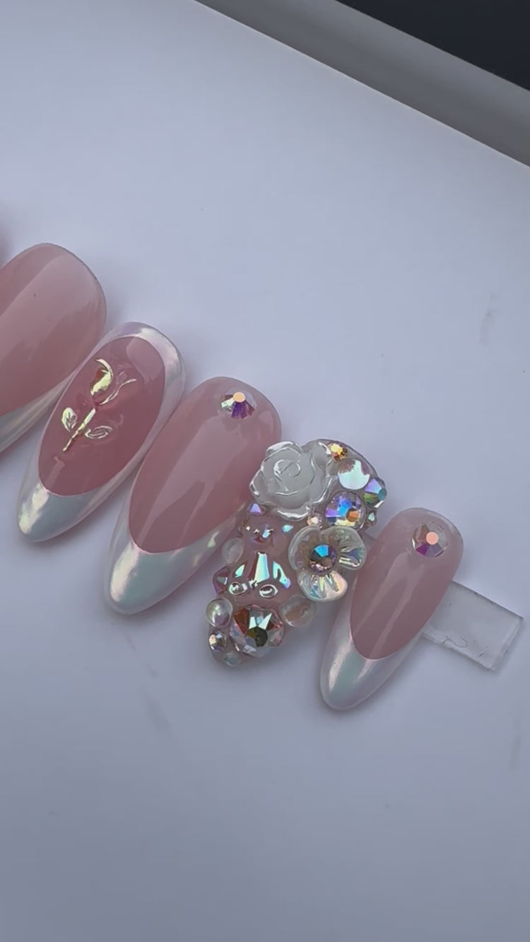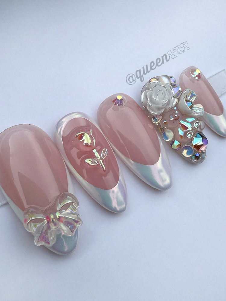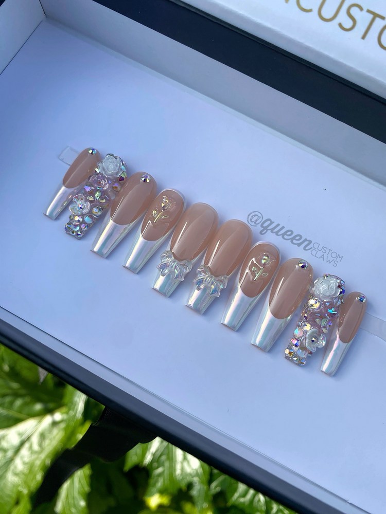 Upgrade your style with our Belle of the Ball Bling press on nails. Adorned with a charming chrome finish French tip, these nails are a guaranteed head-turner. The addition of playful nail charms adds a unique touch, making your look truly one-of-a-kind. Perfect for making a statement on Valentine's Day or any special occasion.day!
