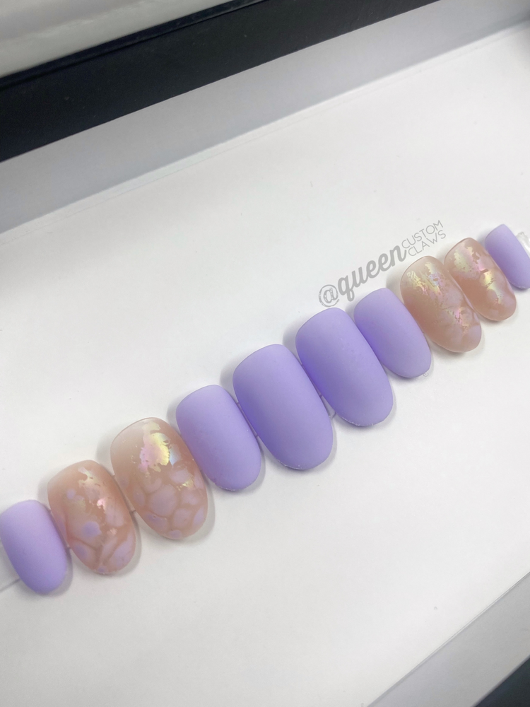 Step up your mani game with these Frosted Venetian Glass-style press-on nails! Crafted to look like a classic glass-making technique, they'll adorn your fingers with a subtle, matte finish. With an iridescent hint of sparkle, they'll instantly make your nails pop - without all the fuss of a salon manicure!