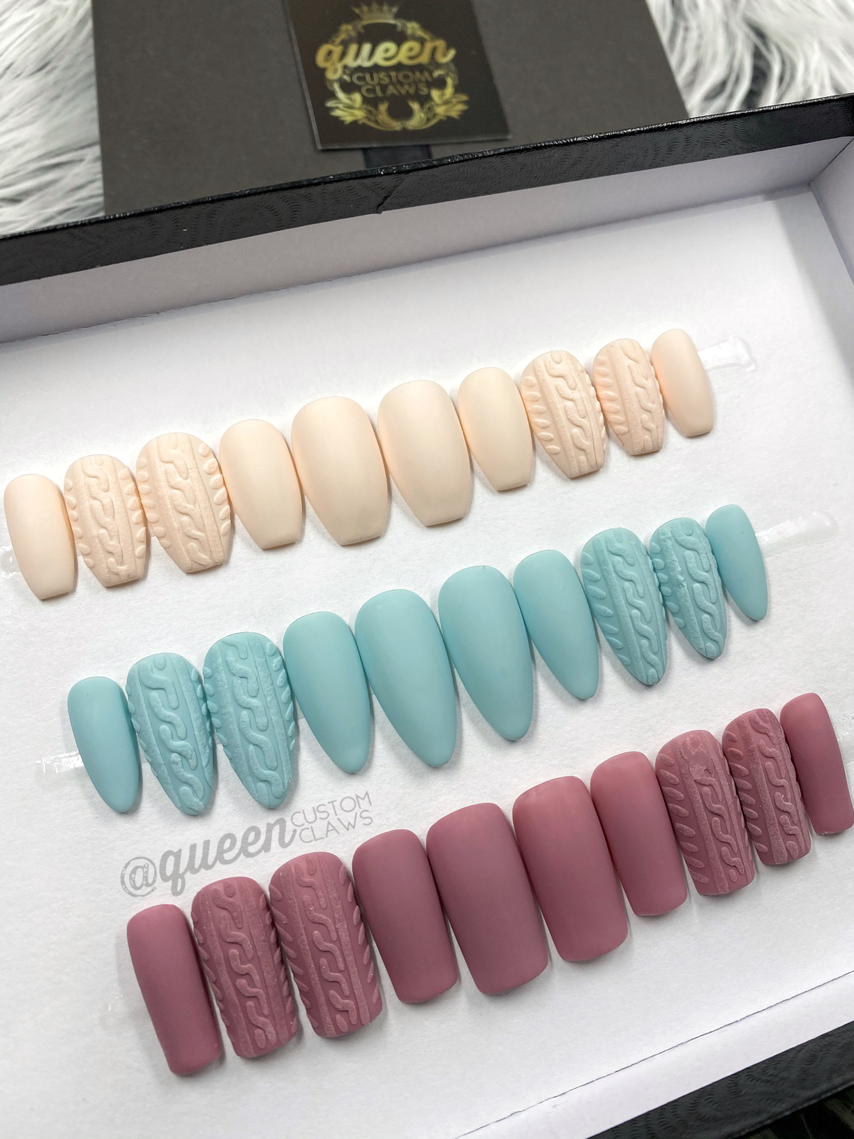 Wrap your look in warmth and style this winter with Sweater Weather nails! Whether you're sipping cocoa by the fire or tearing up the dance floor, these 3D cable knit sweater. detail nails add the perfect cuddly finish to all your seasonal looks. Get ready to snuggles up in style!